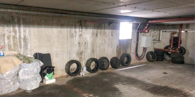 "Tiefgaragenflächen sind auf das Abstellen von Fahrzeugen zu beschränken, keinesfalls dürfen KfZ-Reifen, Hausrat usw. als Brandlasten dort vorgehalten (gelagert) werden."